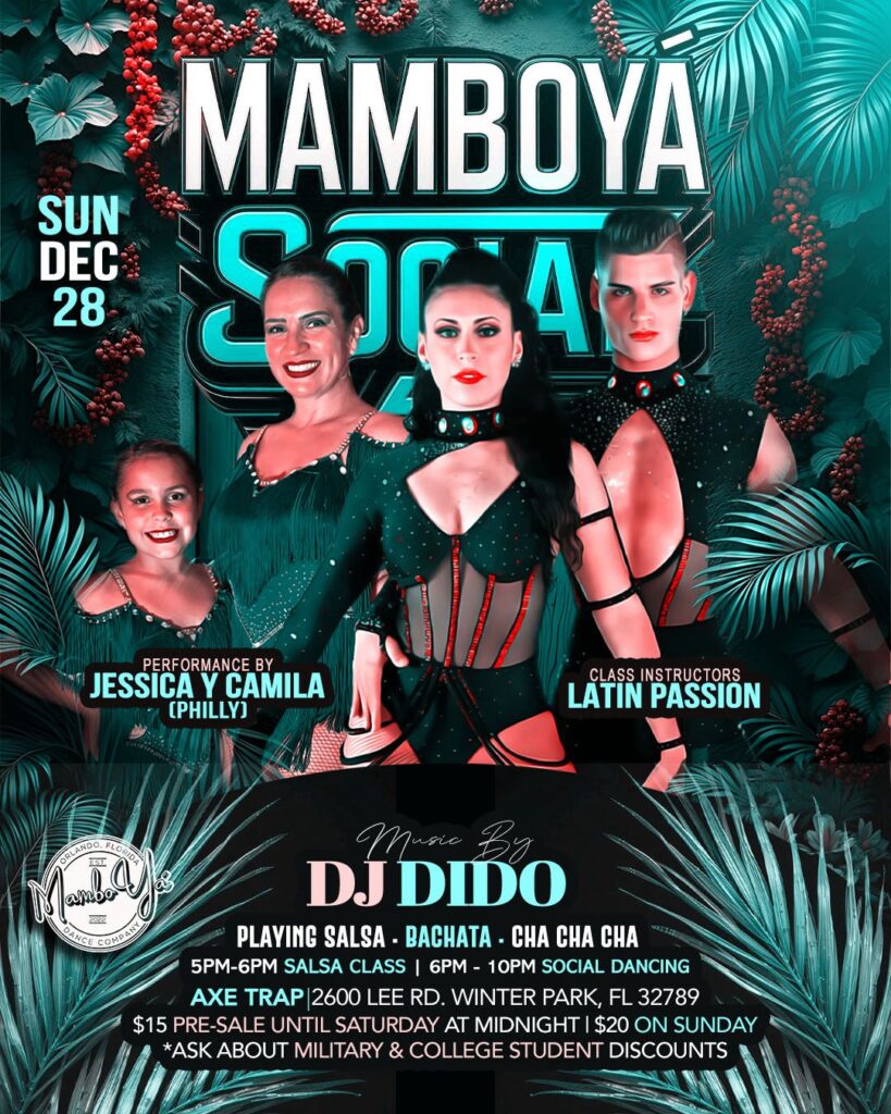 MamboYá is dedicated to enriching Orlando’s cultural landscape through the vibrant art of Latin dance. We strive to create a welcoming space where individuals and communities can grow, connect, and celebrate together—both on and beyond the dance floor. By spotlighting local talent and organizing dynamic events and workshops, we aim to elevate the Latin dance experience while highlighting the beauty of diversity and unity within our community.