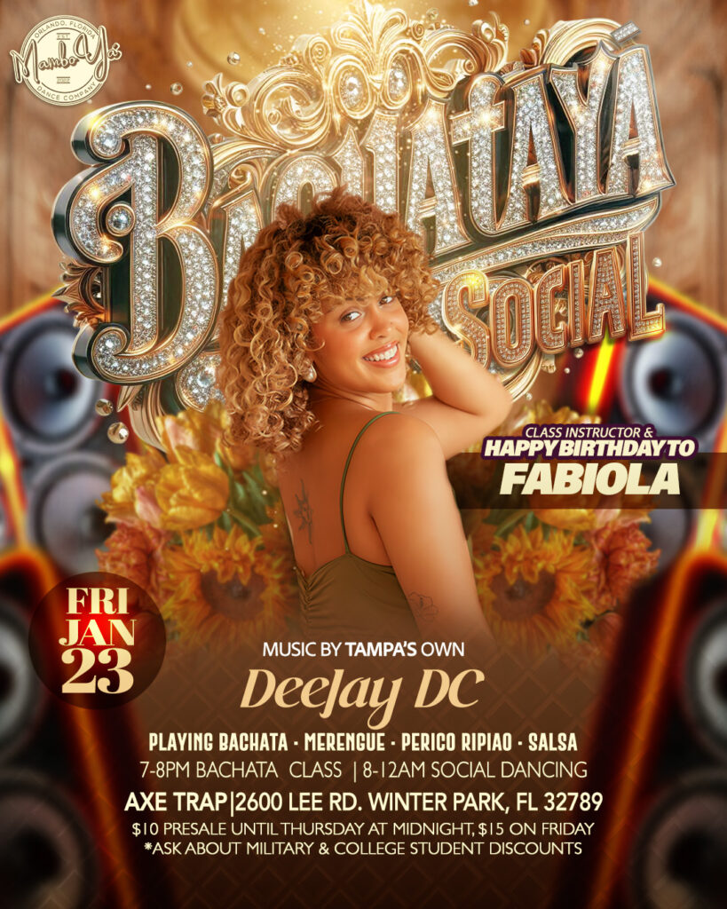 Training + party mode! 🎂 Celebrate Fabiola’s birthday with a Bachata class and a tropical-mix social featuring Tampa’s Deejay DC—a